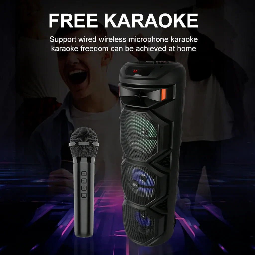 Transformă orice loc într-o petrecere adevărată cu Sing-e ZQS8301, boxa portabilă de putere mare, echipată cu lumini LED colorate și funcții perfecte pentru karaoke, evenimente, fitness, prezentări sau petreceri în aer liber. Cu un design modern, trei difuzoare de 8 inch și un sunet puternic, acest model este alegerea ideală pentru iubitorii de muzică și distracție.